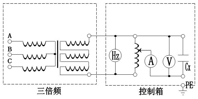 3.6此套試驗裝置帶有多抽頭的電抗器,當(dāng)三倍頻發(fā)生器帶上JCC1類型高壓串級式電壓互感器負(fù)載時,可在被試驗的高壓互感器某一繞組上接入可調(diào)的電抗器進行電流補償來提高整個試驗回路的功率因素.