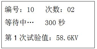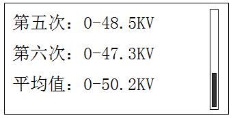 4.1.2、油樣擊穿或到電壓升到最高設定值,儀器立即切斷主回路電源,LCD關閉顯示。大約3秒鐘后,LCD顯示降壓界面;