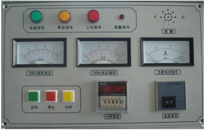 3.5本裝置設(shè)有過流保護,出廠時按額定輸出的電流80%整定,用于小負(fù)載時,應(yīng)根據(jù)負(fù)載重新整定,當(dāng)升壓或耐壓過程中出現(xiàn)過流或擊穿現(xiàn)象時,接觸器斷電,切斷主回路,起到保護作用。