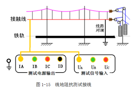 將對(duì)端線路短接接地,A和UA接接觸線。如圖1-15。